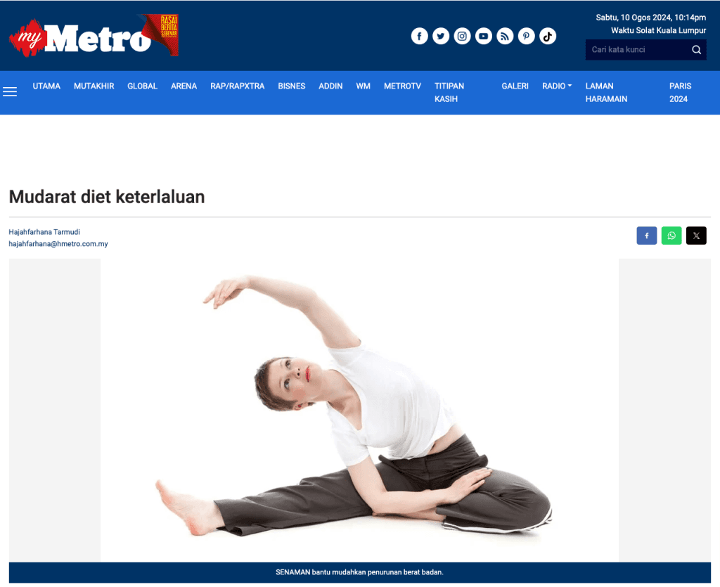 “Bukan satu cara yang sihat jika kita amalkan diet tertentu dengan menyekat pengambilan makanan secara keterlaluan atau jumlah sedikit dalam sehari dan memilih jenis makanan tertentu saja.”